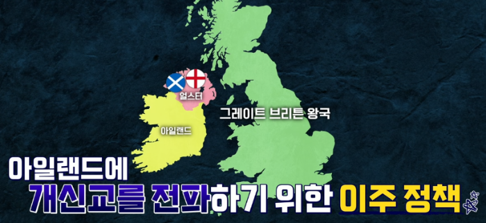 종교 개혁 단행으로 가톨릭에서 분리된 잉글래드는 개신교 국가가 되었고 국교가 달라지자 식민 지배를 받았던 아일랜드에 자신들의 새종교를 믿으라고 요구했다. 그러나 아일랜드인은 이를 받아들이지 않았다. 이에 아일랜드 북쪽 지역 얼스터에 잉글랜드와 스코틀랜드의 개신교도들을 대거 이주시키는 정책을 펼쳤다. 그리고 이곳에 살았던 가톨릭 아일랜드인은 토지를 강제로 빼앗기게 된다.