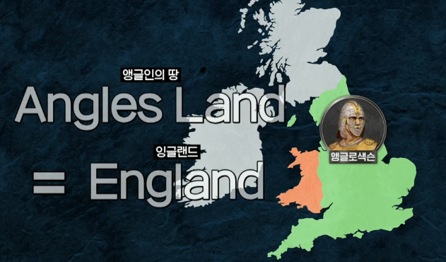 앵글로 색슨족이 이 땅에 왕국을 형성하게 되면서 이 지역은 앵글스 랜드 Angles Land라는 앵글인의 땅이 되었고 이 발음을 따서 새로운 지명이 탄생한 것이 잉글랜드이다. 그래서 이들이 사용한 언어도 English라는 이름이 붙게 된 것이다.