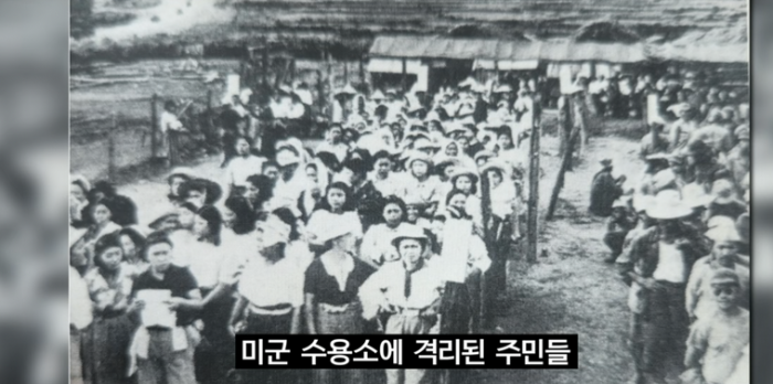 미군 기지 건설을 위해 주민들의 토지를 몰수했고 군사력을 동원해 주민들을 강제로 쫓아낸후 불도저로 주민들의 집과 농토를 밀어버렸다. 저항하는 주민들을 수용소에 가둬두었다. 오키나와에 16개의 수용소를 만들어 군용지로 필요한 땅을 손쉽게 몰수했다.