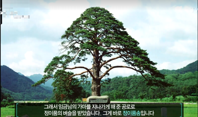 준경묘를 지키는 거대한 금강송을 볼수 있는데 조선 세조 임금이 충북 보은에 있는 속리산을 지나갈때 임금이 타고 있던 가마가 어떤 소나무에 걸리려고 할때 갑자기 소나무가 가지를 들어서 가마를 지나가게 만들었다. 그래서 임금님의 가마를 지나가게 해 준 공로로 정이품의 벼슬을 받은 소나무가 정이품송이다.