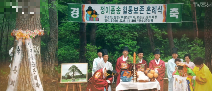 세월이 흘러 준경묘의 금강송과 정이품소나무가 결혼식을 올린다. 정이품송이 신랑, 준경묘의 소나무가 신부이다. 준경묘 숲에 있는 소나무들은 아름드리 낙락장송입니다.