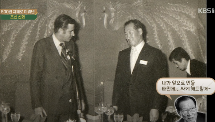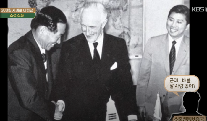 이때 정주영 회장이 당시 오백원 지폐를 꺼내 들고 뒷면의 이순신 거북선을 보여주며 영국보다 300년 앞선 1500년 대에 철갑선을 만든 민족이라고 말하며 롱버텀 회장의 마음을 움직여 영국 버클레이 은행에 추천서를 받아냈다.