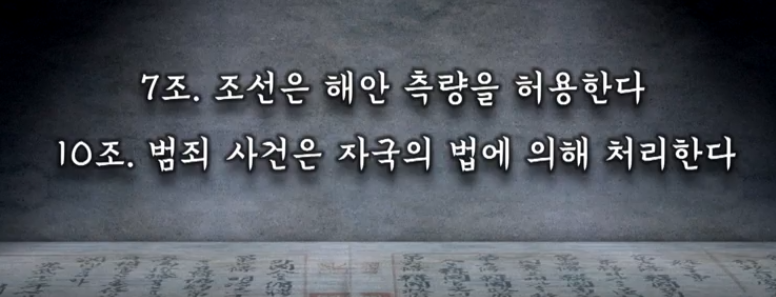 연안 측정 자료는 전쟁의 승패를 좌우할 정보가 됨을 미국과의 조약에서 깨닫고 조선과의 조약에 관련 조항을 넣어버린 것이다. 조선 바다를 일본 군함이 자유롭게 드나들어도 불법이 아닌 것이다. 일본에 대한 관세 철폐, 조선에서의 일본 화폐 사용, 또한 일본은 치외법권까지 누리게 된다. 이 관세 조약으로 조선은 몇년 지나지 않아 경제적으로 일본에 종속되고 만다.