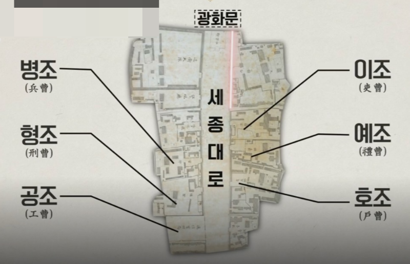 조선시대 육조거리는 총 6개의 중앙관청이 있고 조선시대 광화문 광장에 모여있었다. 지금의 광화문광장 위치에 있는 조선시대 육조거리였다. 지금의 광화문 거리와 비슷하다.