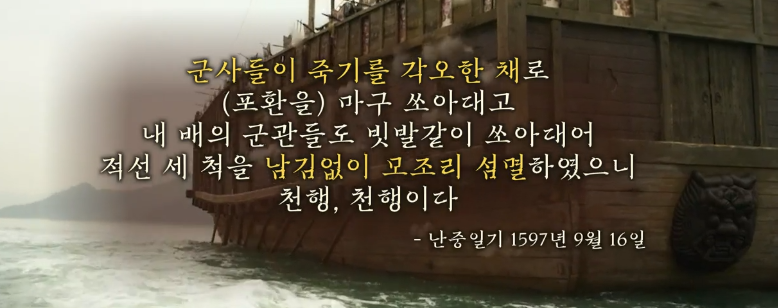- 거북선 없이도 승리: 거북선은 칠천량 해전에서 모두 파괴되어 없었지만, 이순신은 판옥선(조선의 주력 전투선)과 지형을 활용하여 싸웠다.