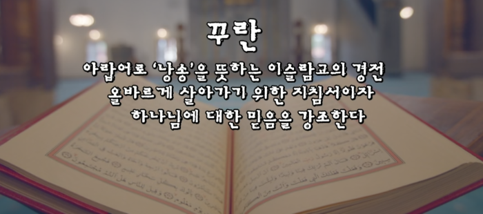 무슬림들은 무함마드가 전한 하나님의 계시를 훗날 기록으로 남겼는데 그것이 이슬람 경전 꾸란이다. 꾸란은 아랍어로 낭송을 뜻하며 꾸란 읽기는 이슬람교에서 반드시 지켜야 하는 의무이다.