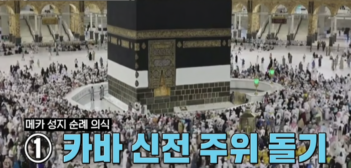 그리고 검은 돌을 만지는 것이다. 카바 신전 한쪽 구석에 검은돌이 있는데 이것은 무함마드가 처음 메카로 순례를 왔을때 검은 돌에 입을 맞췄다고 전해지고 이 돌은 천사 가브리엘이 남긴 돌이라고 믿는다.