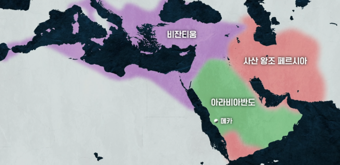 이슬람교 창시자는 6세기경 메카에서 태어났다. 이 지역은 동쪽은 페르시아 , 서쪽으로는 비잔티움이 지배하고 있었고 메카가 있던 지역은 국가 형태가 아닌 혈연 바탕의 여러 부족들이 생활하고 있었다. 6세기 메카인들 대부분이 유목에 바탕을 둔 정착 생활을 하던 시기였다.