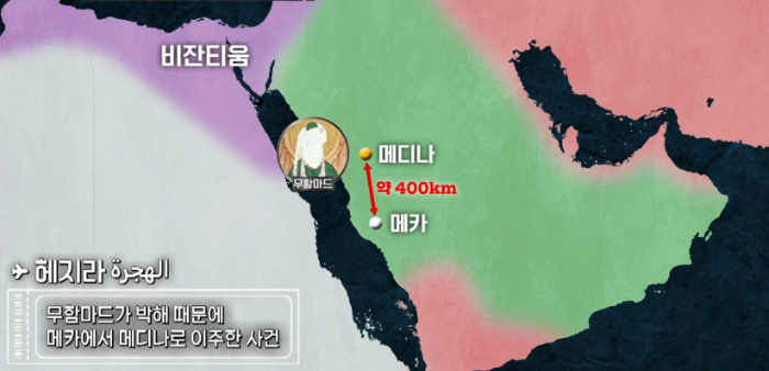 반면 메카 상인들을 중심으로 무함마드는 박해를 당하기 시작하고 결국 메카를 떠나기로 한다. 무함마드는 622년 메카를 떠나 메디나로 향한다.