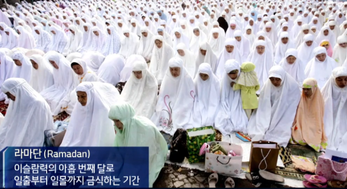 의무 2번째는 하루에 5번 예배드리기이다. 세 번째는 성월 기간= 라마단 중 단식하기로 라마단이란 이슬람력의 아홉 번째 달로 일출부터 일몰까지 금식하는 기간으로 이 시간에는 물을 포함해 어떤 것도 먹지 못한다.