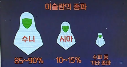 4대 칼리프 알리의 후계자를 선정하는 과정에서 수니 VS 시아로 종파가 나뉘게 되고 당시 4번째 알리에게는 두 아들이 있었는데 알리의 혈통을 이어받는 후계자가 나와야 한다는 알리의 추종자 무리 즉 '시아 알리'가 시아파가 되고 반면에 수니에서는 공동체 원로들끼리 선거에 의해 후계자를 뽑자는 싸움이 벌어지고 다수파 수니, 소수파 시아로 나뉘게 된 것이다. 수니파는 이슬람 공동체의 무함마드의 언행 법적 관행을 중시하는 종파이고 시아파는 정치, 교학적 지도자인 이맘을 따르는 비공식적인 종파이다. 시아파에서 이맘에 제일 중요한데 신과 교신을 하는 정치 지도자로 최고 통치자이자 성직자를 의미한다. 시아파의 이맘은 국왕보다 위에 있는 절대 권력자로 거기서 바로 신정 일치 체제가 나왔고 대표적인 나라가 이란인 것이다.