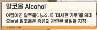 또한 이슬람 학자들은 연금술에도 관심이 많아 당시 다양한 화학 실험을 통해 알코올을 발견하게 되었다. 사실 오늘날 이슬람은 알코올을 금지하지만 아이러니컬하게도 알코올 덕분에 소주, 위스키, 브랜디, 보드카 등등 현대에 즐겨 마시는 증류주가 발전하게 된 것이다.