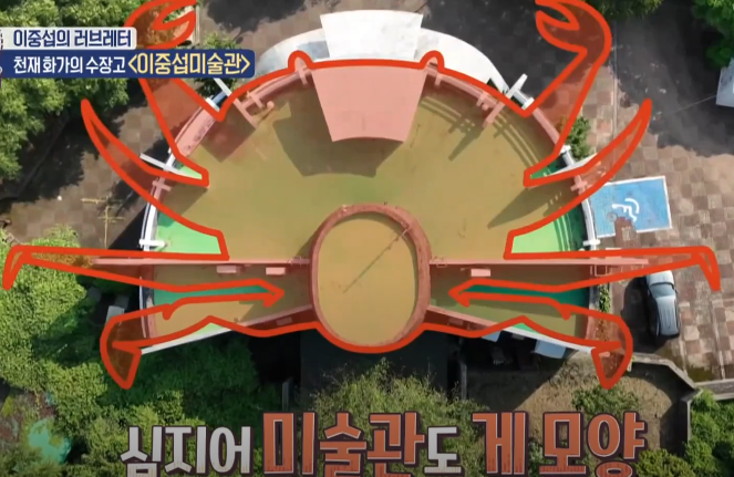 이 작품은 이중섭에게 가족이란 작은 단칸방 속 가족끼리 부대기며 지냈던 것으로 함께 한다는 것은 살을 부딛끼며 연결이 되어 있어야 가족이라고 생각했다. 그 관점에서 보면 이 그림은 가족을 합친 모습의 그림이다. 또한 이중섭 작품에서 아이만큼 많이 나오는 것이 '게' 이다. 심지어 미술관 모양도 게 모양이다.