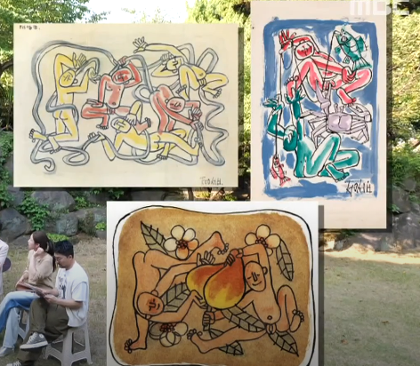이중섭 화가는 항상 아내와 함께 손을 잡고 산책을 즐긴 것이 아니라 해안가로 먹을 것을 구하러 갔고 주로 바닷게를 잡아 삶아 먹었던 이중섭 가족이었다. 그때 바닷게를 너무 많이 잡아먹서 바닷게들한테 미안하다고 사죄하는 마음으로 그렸다고 한다.