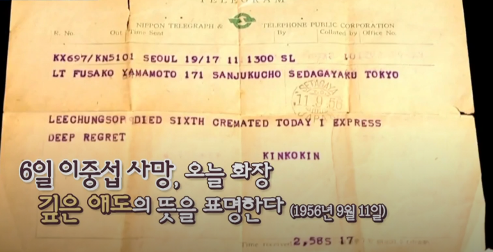 힘들어도 아내에게 3일에 한번씩 편지를 보냈던 이중섭 화백이었으나 간염으로 입원치료를 받던 중 1956년 9월 6일 사망에 이른다. 이날은 하필이면 태풍 엠마가 하루종일 비,바람이 몰이치던 날이여서 아무도 지켜보는 이 없이 홀로 세상을 떠났다. 심지어 병원에서는 연락할 곳이 없어 무연고자로 분류되어 화장 처리되었다 .