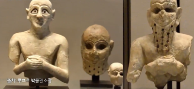 수메르인들의 특징은 머리와 수염을 밀어 없앴다. 같은 지역에 사는 현재 중동 사람들과는 상반된 모습이다. 또한 얼굴은 밝고 선한 표정이다. 오른쪽 끝 그림과 같이 수메르에서 몇몇 사람들이 가발과 가짜 수염을 달았는데 왕이나 장군이 제사지낼때이다. 수메르 이후 왕조 아시리아의 왕부터는 호전적인 모습을 강조한다.