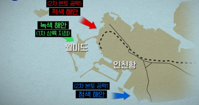 월미도는 인천항을 내려다볼수 있는 장소였고 또한 인천항 앞에는 월미도에 북한군이 주둔해 있었는데 월미도를 두고 인천항으로 진입한다면 역공을 당할수 있었기 때문에 월미도를 반드시 점령을 해야했다. 그래서 월미도를 포함한 주요 상륙지점의 이름을 빛을 삼원색을 따서 녹색, 빨간색, 파란색 3지점을 상륙하는 것이었다.