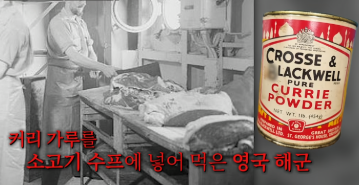 이에 당시 영국 해군의 양식을 도입하기 시작했으나 쉽지 않았다. 처음에 영국 해군이 먹는 빵과 수프 식단을 제시했으나 병사들의 반발이 심했고 이에 영국 해군이 즐겨먹던 커리를 주기 시작한 것이다. 18세기 영국이 인도를 지배하면서 인도의 커리를 자국으로 가져오게 되고 영국인들은 이를 영국인의 입맛에 맞게 커리 가루를 제조하게 되고 이것이 일상적인 음식으로 자리잡게 되었던 것이다. 영국 해군은 커리 가루를 소고기 스프에 넣어 먹었다.