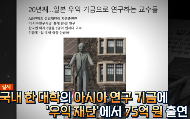 사사카와 료이치라는 A급 전범 인물이 사사카와 재단을 만들어 세계 저명한 교수, 정치인을 대상으로 엄청난 돈을 주며 로비를 하고 있다. 미국인이 일본편을 많이 들면 그 배후에는 항상 이 재단과 연결되어 있다. 일본 정부 역시 유학생 지원 제도를 운영하여 많은 돈을 주며 왜곡된 역사를 주입시키고 있다.