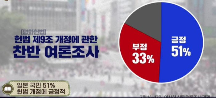 아베는 강한 일본을 만들겠다며 평화헌법 개정에 특히 신경을 쓰고 있었다. 그의 죽음으로 이전에 평화헌번 개정이 목표였던 자민당에 힘이 실리게 되었다. 여론 조사 결과 이전과는 다르게 헌법개정 찬성이 51%로 일본 국민의 여론이 돌아서고 있다.
