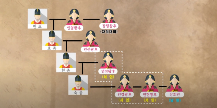그러던 어느날 장희빈을 쫓아내라는 명령이 내려온다. 명령을 내린 사람은 숙종의 어머니 명성왕후였다. 명성왕후는 장희빈이 간사하고 악독해서 분란을 일으킨다고 생각했고 당시 조선시대 당파는 서인과 남인으로 나눠져 있었는데 당시 명성왕후는 서인세력이었다. 명성왕후와 달리 남인 세력에 있던 장희빈은 정치적인 이유로 쫓겨났던 것이다.