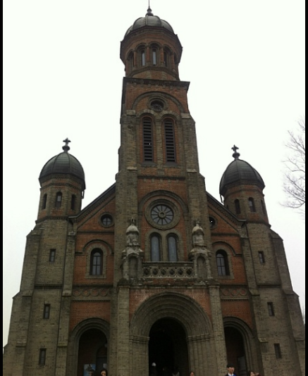 성당의 외벽을 보면 붉은 벽돌과 회색 화강암이 사용된 것을 알 수 있다. 이 색 조합이 성당을 따뜻하면서도 웅장하게 보이게 만든다.