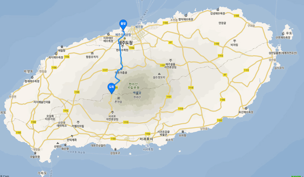 - 길: 1139번 지방도 (서귀포시 1100로). 제주시 → 어승생삼거리 → 1100고지 → 중문/색달동 방향.