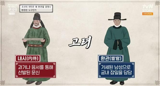 고려시대 환관과 내시는 다른 신분이었으나 조선 시대는 내시=환관이 같은 말이 되었다.