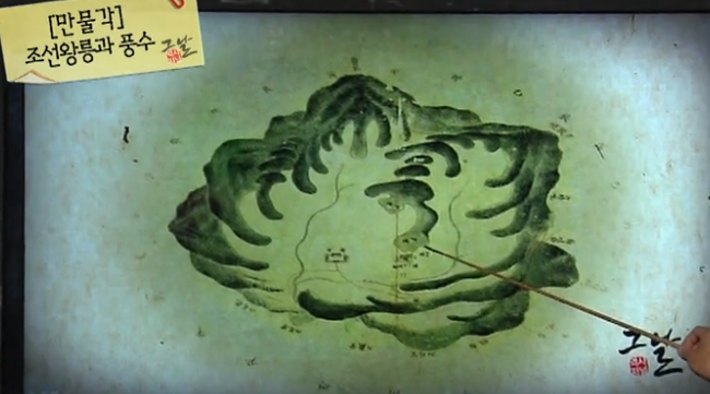명릉도는 숙종과 인현왕후 , 인원왕후의 능을 나타낸 그림인데 산맥과 물줄기가 좌오로 감싸고 있는 지형에 왕릉을 조성한다.