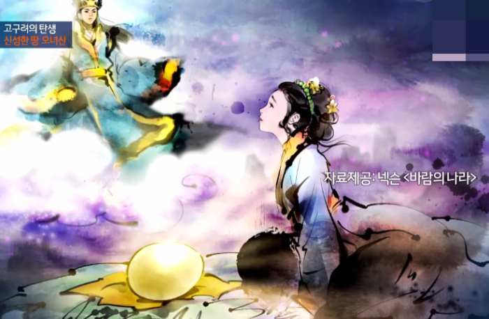 고구려 주몽 탄생신화는 고구려, 백제의 탄생과 관련이 깊다. 주몽 탄생 신화를 보면 고구려가 탄생하기 전 부여나라는 나라가 있었고 부여 신의 아들인 해모수가 하늘에서 내려와 강의 신, 하백의 딸인 유화를 만나 연애를 하게 되고 둘 사이에서 알이 탄생한다.