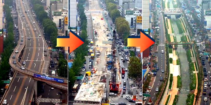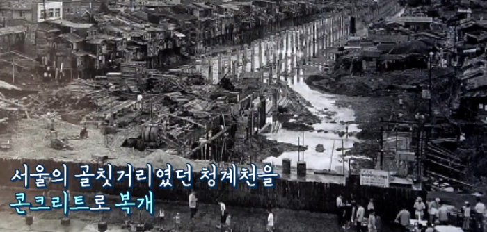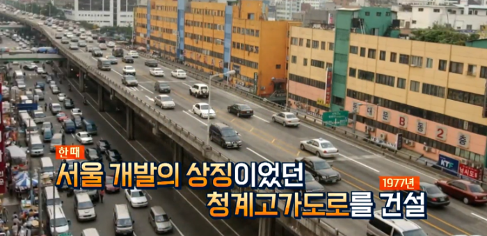 1950년 청계천을 덮는 복개사업이 시작되었다. 그리고 서울 개발의 상징이었던 청계고가도로를 1977년에 건설한다. 그러나 30년 뒤 구조적 안전문제로 청계고가도로 철거를 결정한다. 이때 고 박경리 작가가 청계천 살리기 연구회를 만든다.