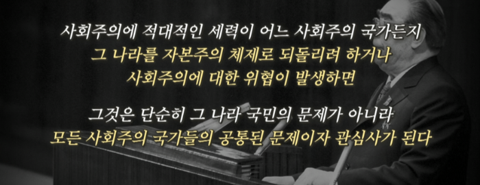 동유럽 국가들에 대한 새로운 정책을 발표하며 내정간섭을 정당화했고 본격적으로 체코슬로바키아에 군대를 투입시킨다. 1968년 8월 21일 체코슬로바키아는 소련군에 의해 침공당한다. 약 2000대의 탱크와 20여만 명의 병력을 투입, 꽃을 들고 평화시위 중인 시위대에게 발포를 시작했고 둡체크를 강제로 퇴출을 시킨후 산림 관리원으로 좌천을 시켰다.