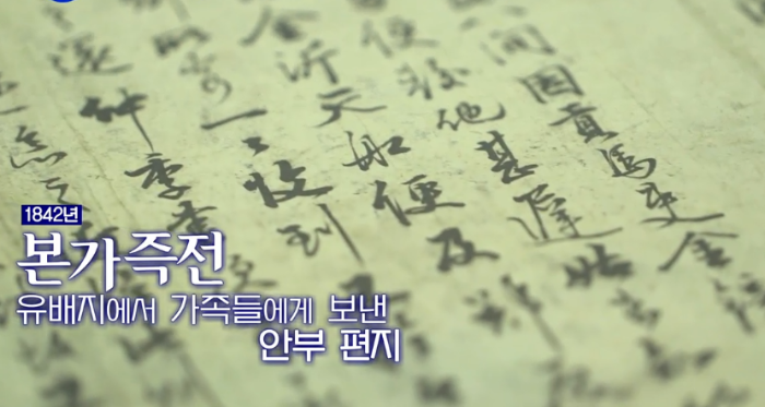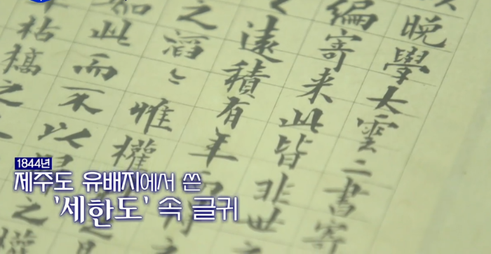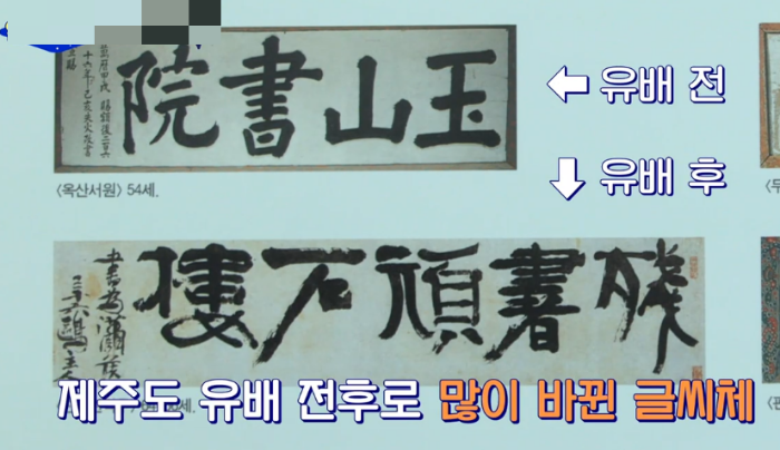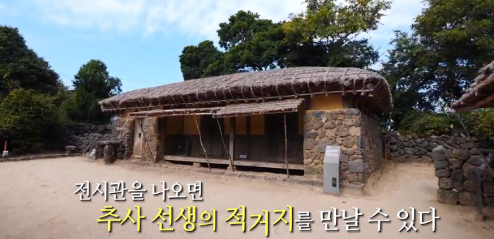 왕의 심기를 불쾌하게 하는 상소를 올렸다가 능지처참을 당한 윤상도의 옥사사건의 초안 상소를 김정희가 작성했다고 관련자들이 말을 해서 김정희가 제주도 대정현에 유배와서 위리안치 (가시덤불로 둘러싸인 집에서 나갈수 없는 최고등급유배) 된다. 그러나 제주도에 유배하던 기간에 많은 글을 쓰고 추사체를 제주에서 완성했다고 한다.