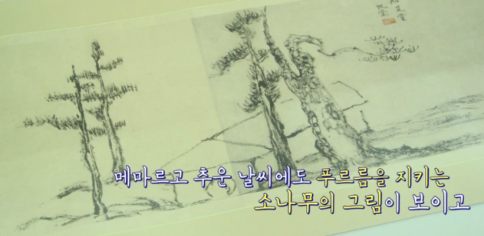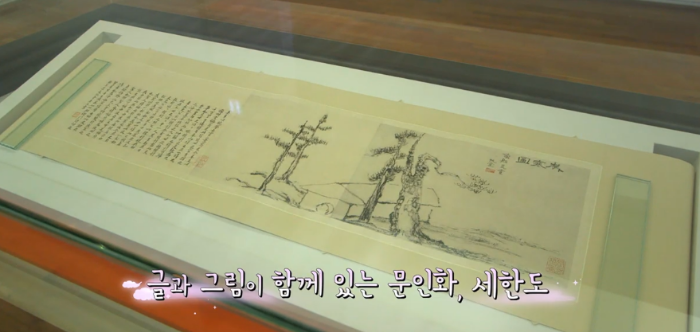 세한도의 뜻은 날이 추워진 다음에야 잣나무와 소나무가 푸르른 것을 알 수 있다. 라는 뜻으로 세한도는 '세한연후지송백지후조' 의 공자님 말씀에서 따 온 제목이다. 세한도는 전형적인 문인화로 문인화는 글과 그림이 같이 있는 것이다. 세한도는 그림 옆 왼쪽에 글이 쭉 쓰여있는 편지이다. 추사의 제자들 중 청나라와의 통역일을 하는 역관 이상적이라는 사람이 대역 죄인이 되어 유배간 김정희를 사람들은 꺼리기 마련인데 이를 신경쓰지 않고 출장갈적마다 스승 김정희가 좋아할 만한 책들을 구해 와서 무려 120권의 책을 선물한 사람이다. 그런 제자 이상적에게 그동안의 고마운 마음을 담아 글을 쓰고 그림을 그려 선물한 것이 세한도이다.