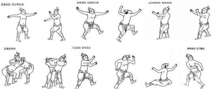 이 무술은 당시 수박(手搏, Subak) 또는 **탁견(蹋鞠, Taekkyeon)**으로 불리며 발전했다. 수박은 손과 발을 함께 사용하는 실전형 무술, 탁견은 리듬 있는 발차기 중심의 민속 무예였다.