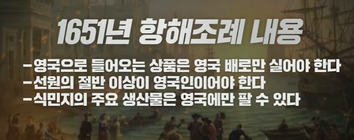 - 영국 또는 영국 식민지 선박만이 영국 무역에 참여할 수 있다.