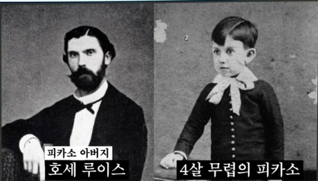 피카소의 아버지는 미술학교 교수였고 피카소는 어린 시절부터 아버지의 영향을 받아 그림을 그리게 시작했고 아버지는 피카소의 재능을 빨리 알라차려 7살 때부터 인물화에 대한 기초 미술 교육을 혹독하게 시켰다. 사실 피카소는 어린때 산만하고 ADHD 를 앓고 있었다는 설이 있는데 그림을 그릴때 만큼은 집중력이 대단했다고 한다.