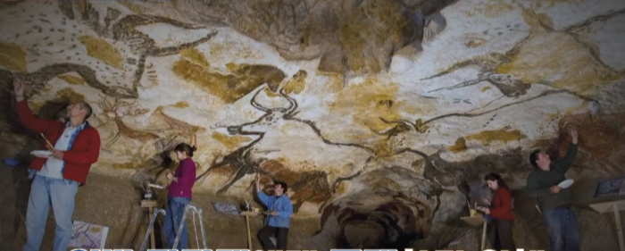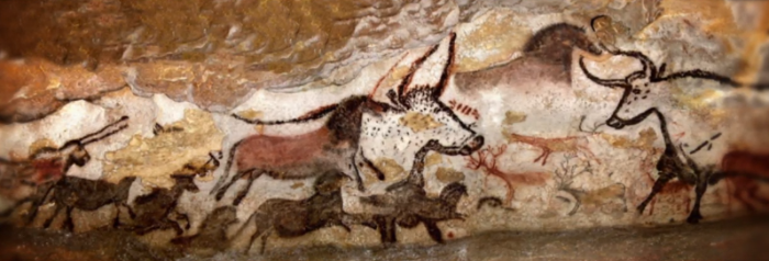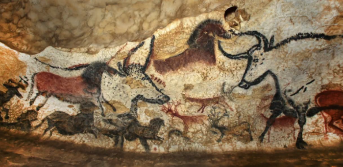 라스코 동굴 벽화는 압도적인 크기를 자랑하는데 무려 380개의 이미지가 그려젼 황소의 방이다. 이 그림은 무려 1만 7천 년전에 그려진 구석기 시대 그림으로 밝혀졌다. 그림을 그린 방식이 속이 빈 동물 뼈를 활용해 입에 물고 있던 물감을 불어서 벽에 색을 입혔던 것으로 추정한다.
