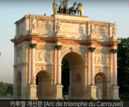 프랑스 파리의 명소하면 빠지지 않는 장소가 개선문이다. 그러나 이 개선문은 3개가 있다. 첫 번째 개선문은 나폴레옹이 1805년 만든 카루젤 개선문으로 루브루 궁전 앞에 위치해 있다. 카루젤 개선문 위에는 베네치아의 산마르코 성당을 장식하던 청동 사두마차 말조각상이 올려져 있었는데 나폴레옹이 몰락 후 이 보물은 다시 베네치아로 돌아갔다. 이후 평화의 신이 사두마차를 탄 청동 조각상과 승리의 여신 금제 조각상을 만들어 올렸다.