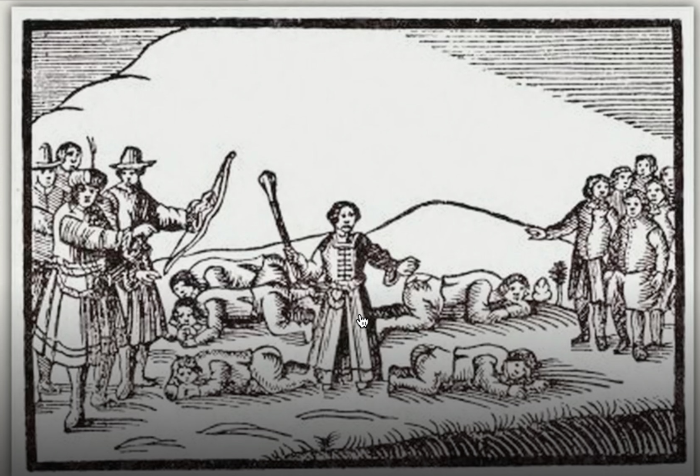 제주 목사 이원진 앞으로 끌려간 하멜 일행. 이들은 말이 통하지 않았고 하멜일행은 야판과 낭가사기만 외쳤다. 야판은 일본, 낭가삭기는 나가사키였다.