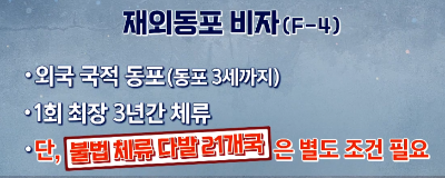 불법 체류 다발국 21개국 : 중국, 필리핀, 인도네시아, 방글라데시, 베트남, 몽골, 태국, 파키스탄, 스리랑카,인도, 미얀마, 네팔, 이란, 우즈베키스탄, 카자흐스탄, 키르기스스탄, 우크라이나, 나이지리아, 가나, 이집트, 페루