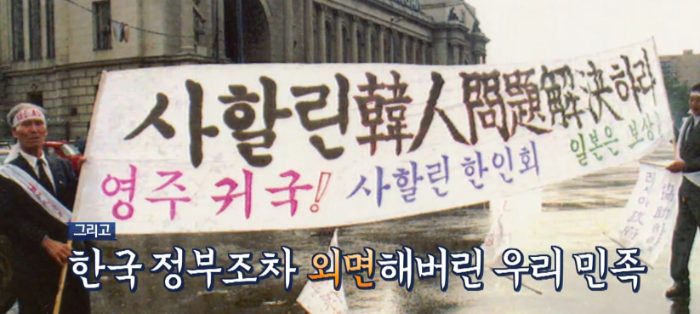 우리 정부는 당시 힘이 없었기 때문에 한국 정부조차 사할린 동포를 데려와야겠다는 정치적 요청을 하지 못했고 소련과의 국교도 없었다. 원래는 일본이 했어야 했다. 전쟁이 끝난 당시 제일 동포는 일본인으로 규정되어 있었고 일본은 이들을 방치했고 이들은 지금도 무국적자로 살고 있다. 이들은 남한 국적도 북한 국적도 택하지 않은 사람들로 난민자격으로 살아가고 있는 것이다.