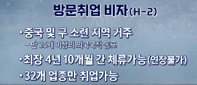 불법 체류 다발국 21개국 : 중국, 필리핀, 인도네시아, 방글라데시, 베트남, 몽골, 태국, 파키스탄, 스리랑카,인도, 미얀마, 네팔, 이란, 우즈베키스탄, 카자흐스탄, 키르기스스탄, 우크라이나, 나이지리아, 가나, 이집트, 페루