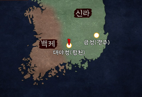 백제 장수 윤충이 이끄는 백제 대군단이 대야성을 총공격에 들어갔고 손쉽게 대야성이 함락되었다. 김품석의 아내는 고타소로 김춘추의 딸이었다. 김춘추의 사위가 지키고 있던 성에 백제가 쳐들어 온 것이다. 윤중의 1만 군대에 성주 김품석은 성문을 열고 항복한다. 그때 김품석과 그의 아내가 죽임을 당하게 된다. 군사 요새였던 이곳이 너무 쉽게 무너진 이유는 내부에 적이 있었기 때문이다. 성주 김품석에게 아내를 빼앗긴 그의 부하 검일이 배신을 하고 백제와 손을 잡았던 것이다.