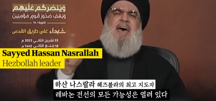 실제로 이스라엘과 레바논의 접경지역에서 이스라엘과 헤즈볼라의 교전이 벌어지면서 확전 위기가 높아지고 있다. 문제는 헤즈볼라뿐 아니라 아랍권의 다른 조직들도 전쟁 개입 선언을 하고 있다. 자칫 제 5차 중동전쟁으로 번질 수도 있는 긴박한 상황에 놓여있는 것이다.