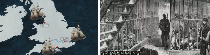 1700년~1775년까지 영국 정부는 5만 2천 명의 죄수를 북아메리카로 유배를 보냈다. 그러나 1775년 미국 독립 전쟁으로 영국은 미국이라는 식민지를 잃게 되고 더이상 미국에 죄수를 보낼 수 없게 되자 배를 만들어 강이나 바다에 띄워서 가두었다.