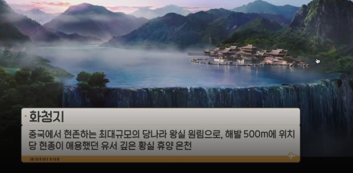 양귀비와 현종의 사랑이 절정에 이른 곳은 화청지이다. 현종은 매년 추워지기 시작하는 10월 추위를 피해 황실 전용 온천탕이자 요양지인 온천궁인 화청지에 갔다. 특히 양귀비와 만나기 시작하면서 화청지에서 정무도 보고 외국 사신도 이곳에서 봤다. 화려한 옥과 대리석으로 장식된 화청지에는 양귀비를 위한 전용 욕탕동 마련되어 있다.