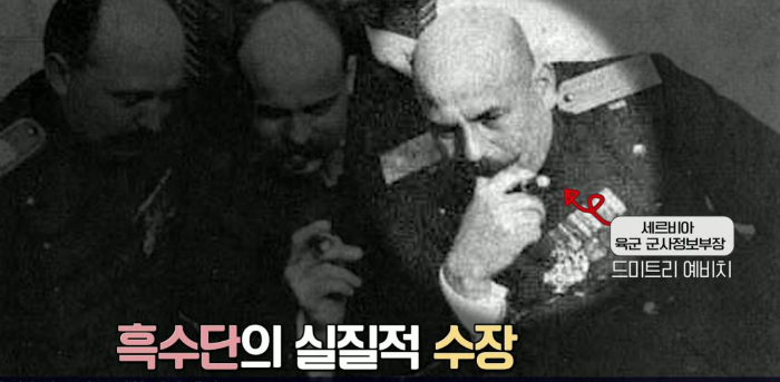 이 암살자들은 '흑수단' 으로 세르비아 육군 장교들이 결성한 비밀결사 조직이었다. 흑수단의 목표는 보스니아를 해방시켜 세르비아로 병합하는 것이었다. 흑수단의 실질적 수장은 드미트리 예비치는 세르비아의 육군 군사정보부장이었다.