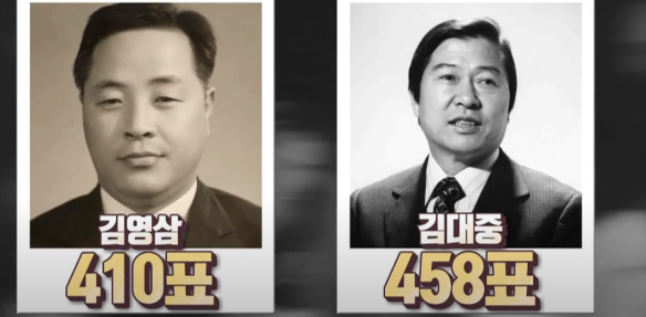 이후 박정희는 유신헌법을 실시한다. 이때 김영삼과 김대중은 모두 해외에 있었다. 김영삼은 하버드 대학 초정 강연으로 미국에 있었고 김대중은 일본 병원에서 다리 치료를 받던 중이었다. 이때 김영삼은 박정희 정권을 상대로 싸우겠다고 바로 귀국하고 김대중은 해외에 남아 망명하여 반유신 활동을 이어간다.