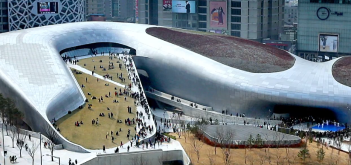 DDP 동대문 디자인 플라자는 Dream, Design, Play 꿈꾸고, 만들고 , 누리다라는 의미를 담고 있다. 2008년 착공 2014년도에 개장하였다. 자하 하디드라는 이라크 출신의 건축가가 디자인했고 세계 최대 3차원 입체설계방식을 도입해 삼성물산에 의해 만들어졌다.